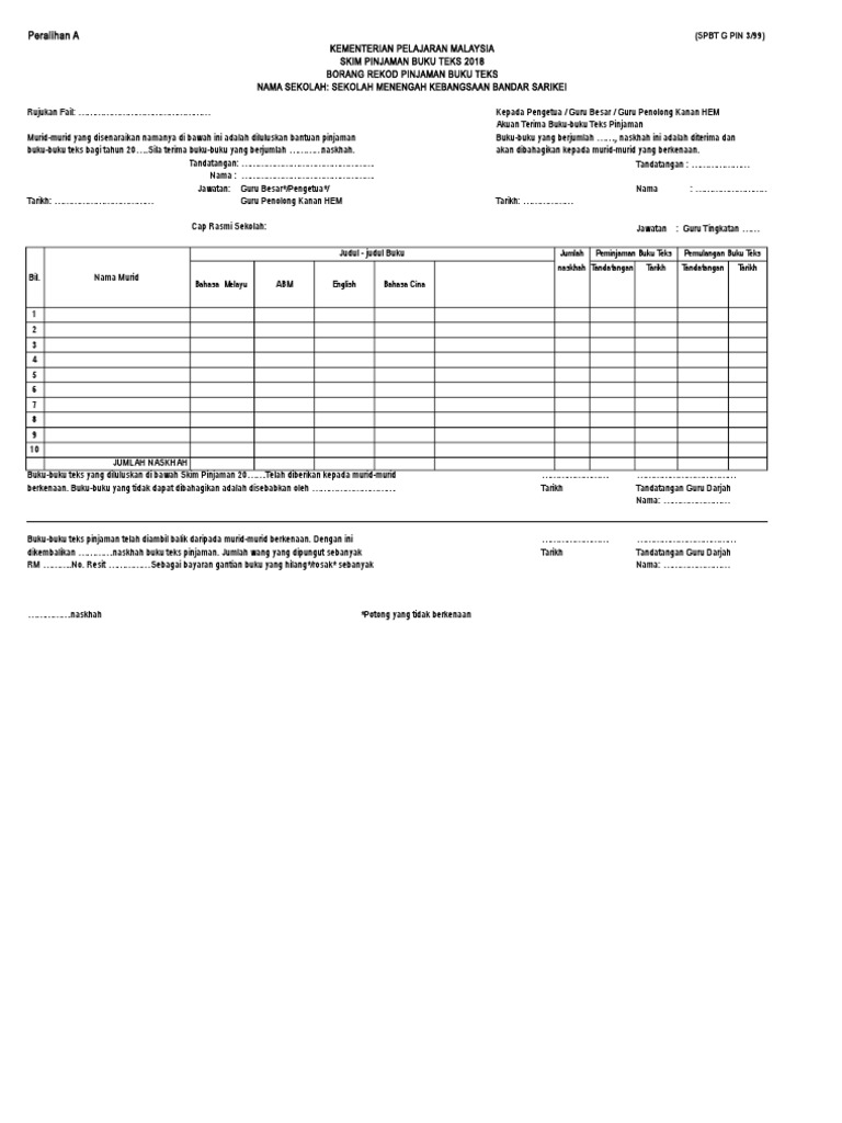 Menjalankan proses peminjaman buku teks pelajar yang belum mendapatkan buku teks mengira buku teks februari. Borang rekod pinjaman buku tek. Borang rek od pinjaman buku teks. Sdfsdf sfg gsfgfdgs fdgf gfdgfsrtr. Borang rekod murid tidak memulang buku teks.
